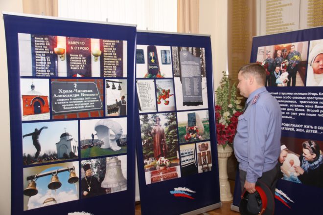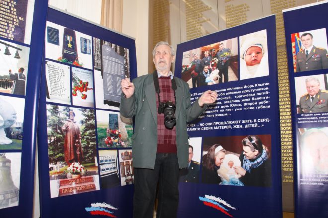 Эта выставка посвящена памяти сотрудников МВД России, погибших при исполнении служебных обязанностей, в т.ч. и «горячих точках». Тем, кого сегодня с нами нет, кто, пожертвовав жизнью, выполнил свой гражданский, служебный и воинский долг. В своих фотоработах автор запечатлел более ста портретов родителей, вдов и детей милиционеров и военнослужащих внутренних войск, погибших при исполнении служебных обязанностей. Долгие годы Владимир Попов является свидетелем и документалистом мероприятий, проводимых Министерством. Практически всех, запечатленных на фотографиях женщин, знает по имени-отчеству, из какого они региона и судьбу их погибшего мужа, сына, отца, нередко ведет с ними переписку. «Герои моих фотоснимков – это люди, которыми я восхищаюсь, перед которыми преклоняюсь», – отмечает Владимир Попов.