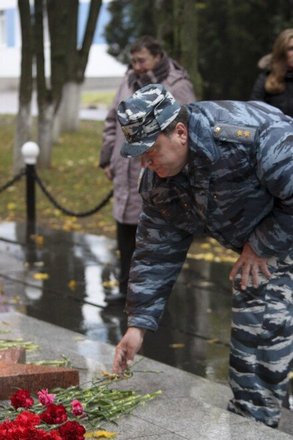 В ходе мероприятия первый заместитель министра внутренних дел России Александр Горовой возложил цветы к обелиску памяти сотрудников, погибших при исполнении служебных обязанностей, и наградил личный состав центра специального назначения МВД России, передает РИА Новости.