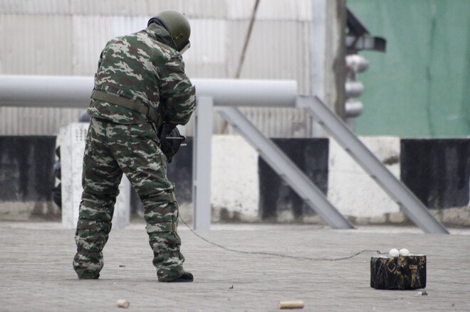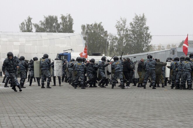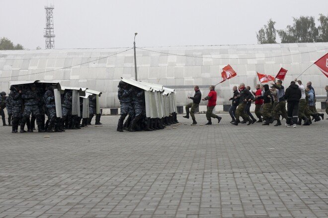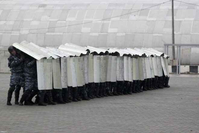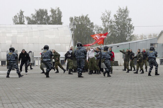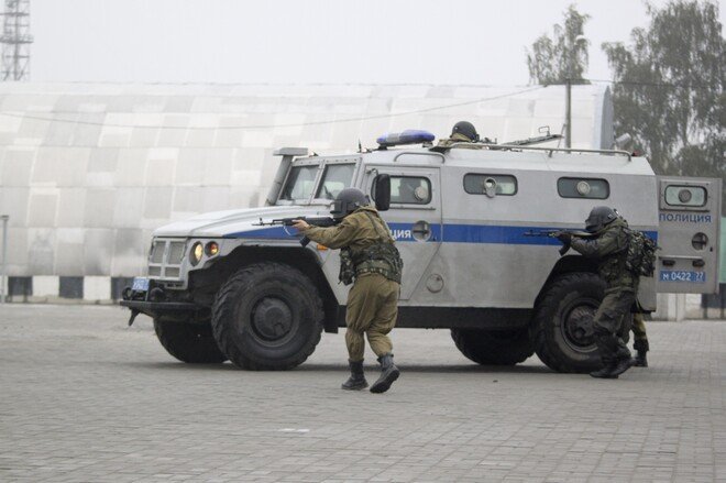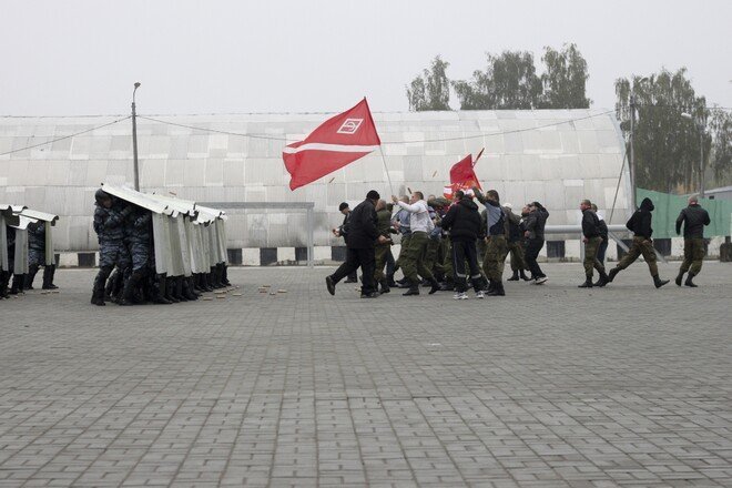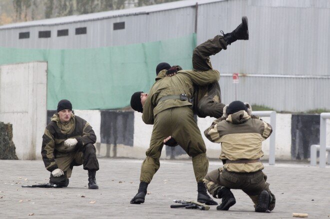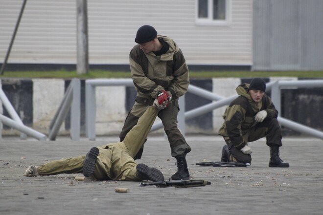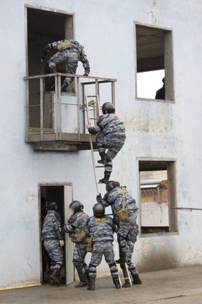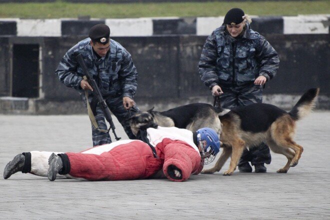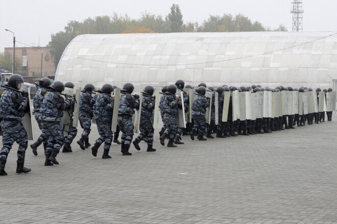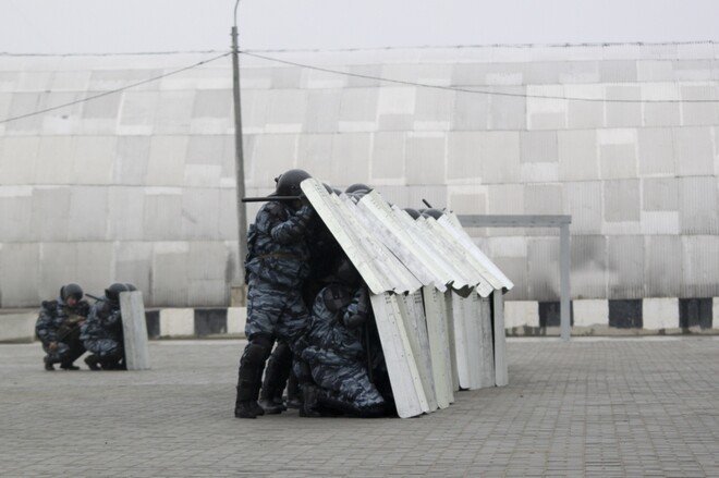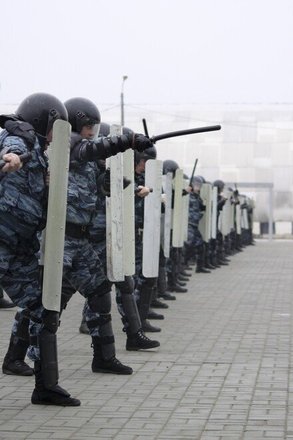 На подмосковной базе отряда особого назначения «Зубр» сотрудники спецназа МВД учились задерживать «футбольных болельщиков». Таков был сценарий тактико-специальных учений, приуроченных к 23-й годовщине со дня образования отрядов особого назначения (ОМОН).