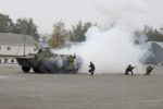 На территории базы для гостей была организована выставка авто-бронетехники, вооружения и специальных средств.