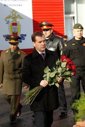 В ходе своей рабочей поездки Президент посетил базу отряда специального назначения УВД по Тверской области, где наблюдал за учениями бойцов подразделения и возложил цветы к памятнику сотрудникам отряда, погибшим при исполнении служебного долга.