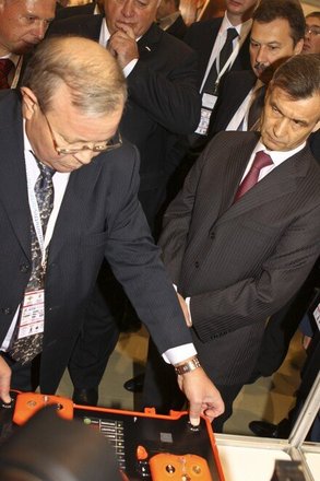 Министр внутренних дел Рашид Нургалиев ознакомился с работой нового алколазера, определяющего пары алкоголя в воздухе салона движущегося автомобиля. "Бутон" определил пары алкоголя в движущейся машине в выставочном салоне.