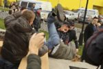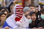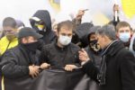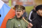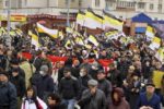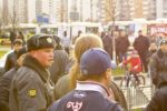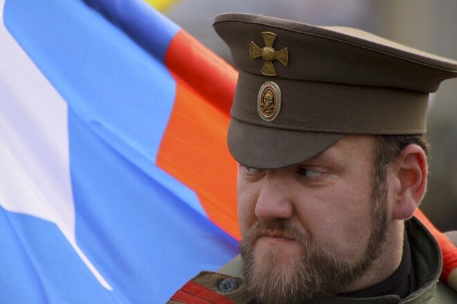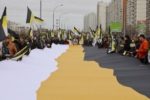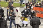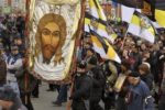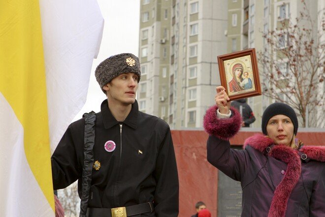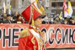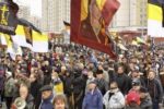 Участники акции выстроились в колонны и начали шествие по улице Перерва в сторону метро Марьино. Каждая колонна включает представителей определенной организации или движения, и у каждой свои лозунги. Большинство участников акции вышли под имперскими флагами.