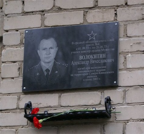 19 ноября в МОУ СОШ № 4 г. Грязи Липецкой области состоялось торжественное открытие мемориальной доски памяти ученика этой школы, врача, капитана внутренней службы УВД по Липецкой области Александра Волокитина, геройски погибшего при исполнении своего служебного долга.