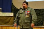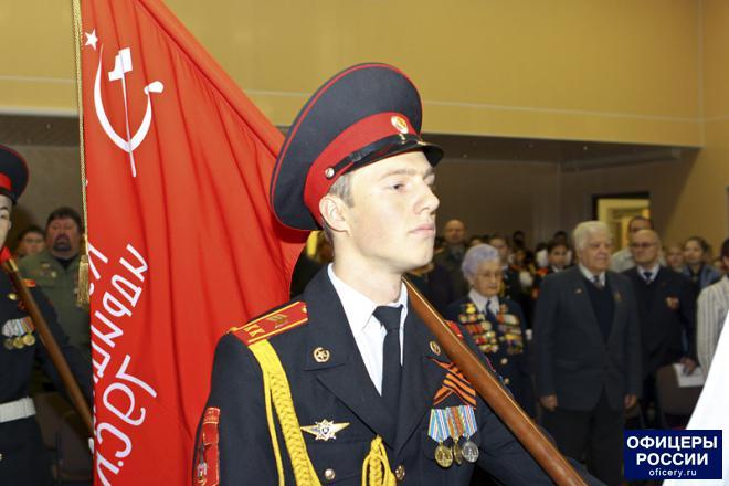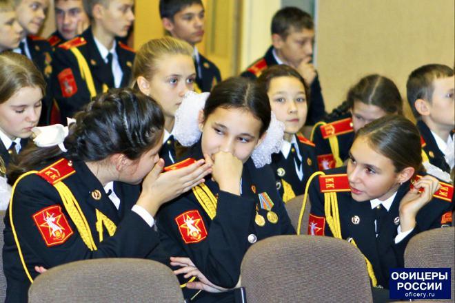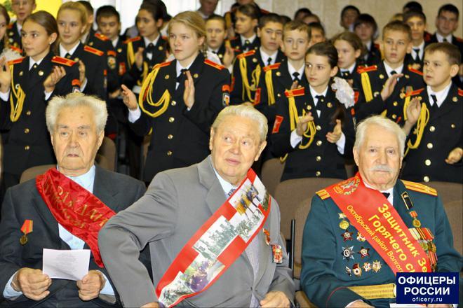 Мероприятие продолжилось в актовом зале кадетской школы. К гостям и кадетам с приветственным словом обратились директор учебного заведения Ирина Ионова, а также член Наблюдательного совета Общероссийской общественной организации «ОФИЦЕРЫ РОССИИ», бывший командир отряда специального назначения «Витязь» Николай Соловьев. Он пожелал кадетам успехов в учебе, а ветеранам войны – здоровья и благополучия.