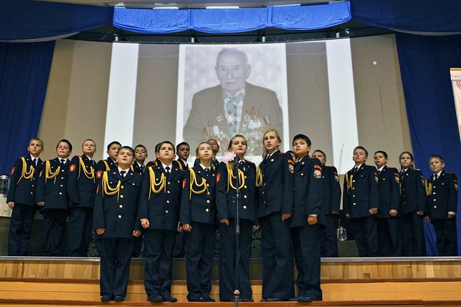 Кадеты, в свою очередь, показали гостям театрализованную литературно-музыкальную композицию на военную тему. А затем перед зрителями выступил Московский академический женский хор ветеранов войны и труда. И, конечно же, непременный кадетский вальс. Девчонки и мальчишки, закружившиеся в красивом танце, до глубины души растрогали ветеранов войны.