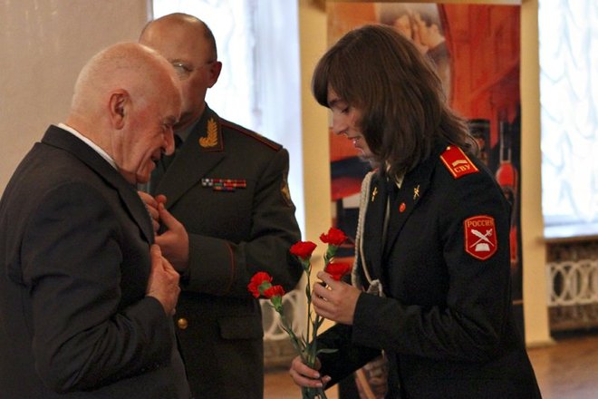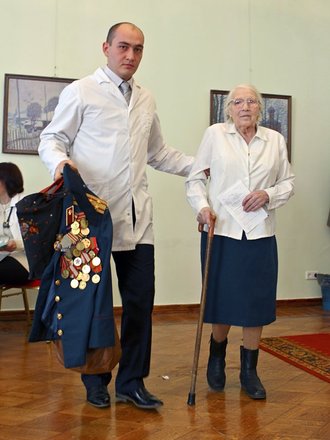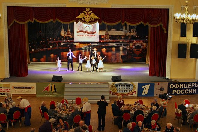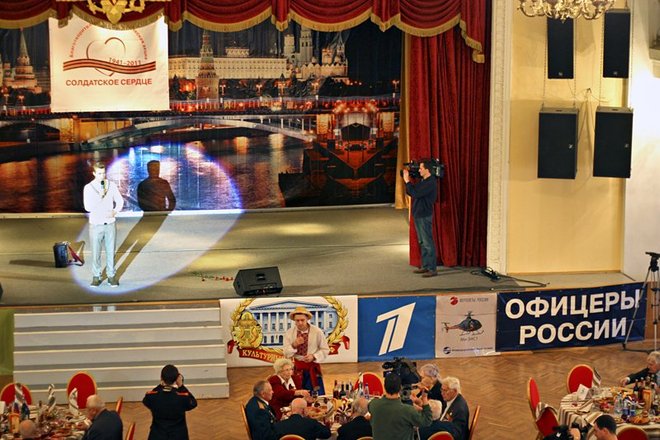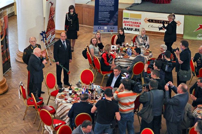 Затем в Краснознаменном колонном зале состоялся торжественный прием ветеранов при поддержке Общественного совета при Минобороны и Общероссийской общественной организации «ОФИЦЕРЫ РОССИИ». Представители Министерства обороны РФ, правительства Москвы и общественных организаций поздравили ветеранов и вручили им подарки. Завершилось мероприятие чаепитием и праздничным концертом с участием московских артистов.