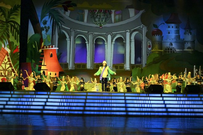 В занимательной форме, с лихо закрученным сюжетом, с использованием элементов интерактива со зрителями, выстроенный на яркой, разнообразной музыкальной фактуре, спектакль в равной степени был интересен как детям, так и взрослым. Необычен также исполнительский состав. Основу труппы составили хореографические, вокальные и спортивные коллективы Москвы. Всего в постановке приняли участие более тысячи исполнителей. И не только самые обычные школьники, но и их учителя, тренеры на вечер преобразились в персонажей спектакля. Конечно, наиболее сложные в актерском понимании, ключевые роли исполнили известные артисты эстрады, а также актеры столичных музыкальных и драматических театров.