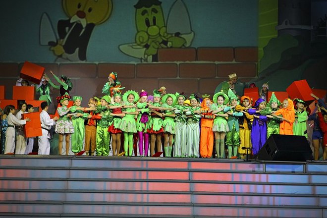 "Учитывая то, что 2011 год объявлен годом Италии в России и годом России в Италии, мы решили обратиться к бессмертной сказке итальянского писателя Джанни Родари "Чиполлино", – рассказывает руководитель проекта «Олимпийские надежды», член Общественного совета Москвы Виктория Соболева. – Дети занимаются физкультурой и спортом, а сделать так, чтобы им было интересно, можем только мы, взрослые, поэтому мы постоянно ищем новые формы привлечения детей. Отрадно сознавать, что такое огромное количество юных москвичей с удовольствием участвуют в «Олимпийских надеждах», а теперь и мюзикле".