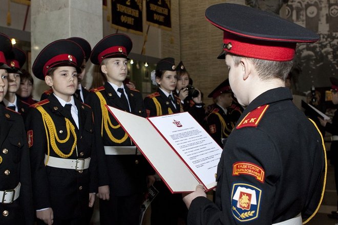 Более 70 воспитанников московского Кадетского корпуса памяти Героев Сталинградской битвы 24 ноября приняли кадетскую присягу. Торжественное мероприятие проходило в Центральном музеи Вооруженных Сил.