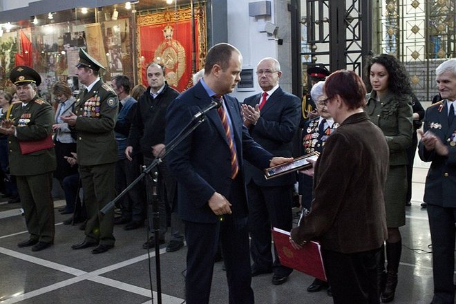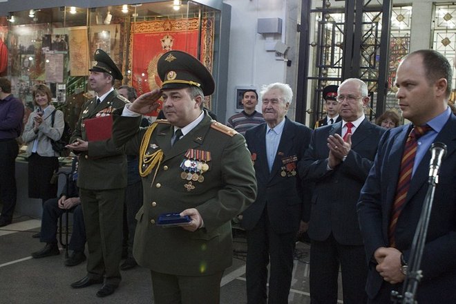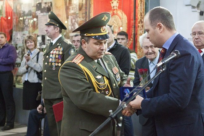 За активную военно-патриотическую работу, проводимую в школе, председатель Наблюдательного совета Общероссийской общественной организации «ОФИЦЕРЫ РОССИИ» Антон Цветков вручил директору Ирине Ионовой благодарность, а заместителю директора, подполковнику запаса Валерию Воронкову – медаль «За офицерскую честь».