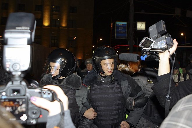 4 декабря, на Триумфальную площадь в Москве вышли до 300 сторонников оппозиции, посчитавших выборы в Госдуму РФ нечестными. В МВД сообщили, что на Триумфальной также присутствовали примерно 200 журналистов. Собравшиеся скандировали "Позор!" и "Ваши выборы – фарс!", а также зажигали файеры. По данным издания "Грани.ru", полицейские задержали десятки журналистов, фотографов и гражданских активистов – всего 124 человека.