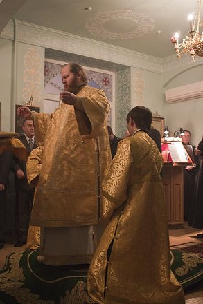 Вместе с владыкой Саввой за Богослужением молились: председатель Синодального отдела по взаимодействию с Вооруженными Силами и правоохранительными учреждениями протоиерей Дмитрий Смирнов, заведующий сектором по взаимодействию с правоохранительными учреждениями Синодального отдела по взаимодействию с Вооруженными силами и правоохранительными органами протоиерей Александр Добродеев, другие священнослужители, руководство, сотрудники, слушатели академии, а также представители Общероссийской общественной организации «ОФИЦЕРЫ РОССИИ», которые подарили домовому храму плазменный телевизор и DVD-плеер.