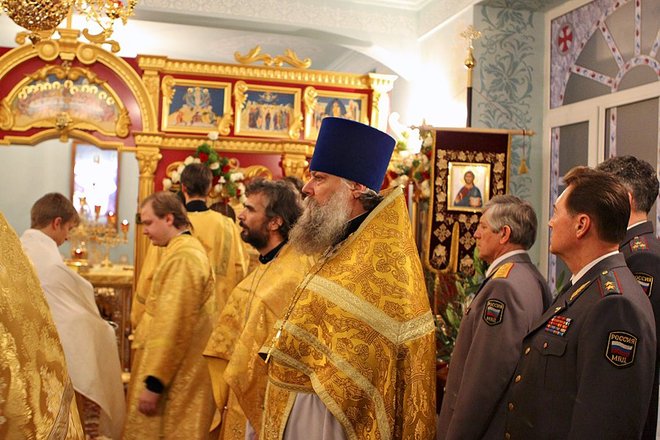 По завершении Богослужения начальник академии управления, генерал-полковник полиции Владимир Гордиенко обратился со словами благодарности к епископу Савве, сказав, что это событие является знаменательным не только для академии и министерства в целом, но и для всей России, так как наша страна по-прежнему, как и при Александре Невском, нуждается в высоконравственных защитниках своего Отечества.