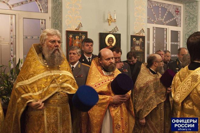 Вместе с владыкой Саввой за Богослужением молились: председатель Синодального отдела по взаимодействию с Вооруженными силами и правоохранительными учреждениями протоиерей Дмитрий Смирнов, заведующий сектором по взаимодействию с правоохранительными учреждениями Синодального отдела по взаимодействию с Вооруженными силами и правоохранительными органами протоиерей Александр Добродеев, другие священнослужители, руководство, сотрудники, слушатели академии. На службе также присутствовали представители Общероссийской общественной организации «ОФИЦЕРЫ РОССИИ», которые подарили домовому храму плазменный телевизор и DVD-плеер.