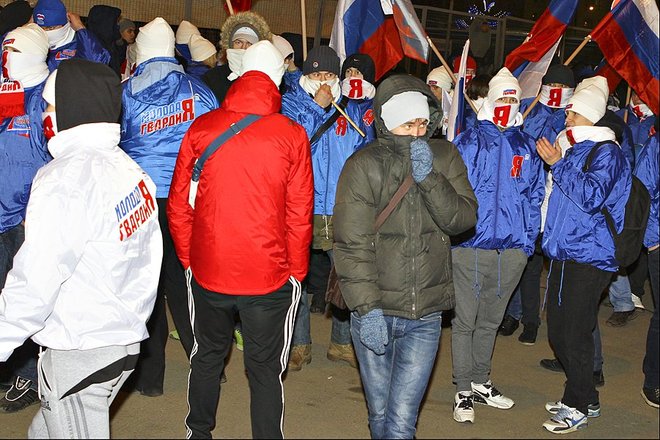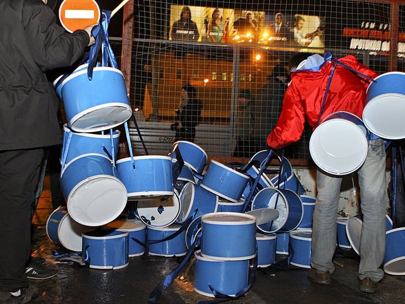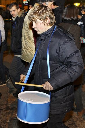 На Триумфальной накануне собрались не менее 2 тыс. активистов "Наших" и "Молодой гвардии "Единой России", которые били в розданные им барабаны.