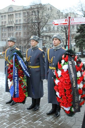 В числе прочих к подножию памятника-часовни также был возложен венок и от Общероссийской общественной организации «ОФИЦЕРЫ РОССИИ». На церемонии организацию представлял председатель наблюдательного совета Антон Цветков.