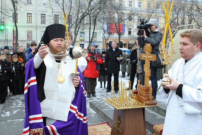 Торжественное священнодействие совершил епископ Савва, наместник Новоспасского монастыря. Вместе с владыкой Саввой за богослужением молился заведующий сектором по взаимодействию с правоохранительными учреждениями Синодального отдела по взаимодействию с Вооруженными силами и правоохранительными органами протоиерей Александр Добродеев и другие священнослужители.