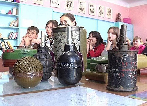 Такие опасные находки всплывают в наше мирное время регулярно. И задача полиции, а также школьных преподавателей и родителей школьников – предупредить ребят о серьезной опасности, с которой они могут столкнуться в любой момент. Фотографии последствий таких находок всегда производят на слушателей большое впечатление и, без сомнения, заставляют задуматься. Как, впрочем, и демонстрация муляжей мин-ловушек, сопровождающаяся громкими хлопками и даже дымом. Вот, казалось бы, обычная книжка, вместо закладки – сторублевая купюра. Однако стоит за нее потянуть, как раздается «взрыв». А вот в руках взрывотехника обычная, казалось бы, ручная граната. Рычаг зажат в кулаке, и в соответствии с механизмом ее действия взрыва не должно произойти. Однако кольцо выдернуто – и звучит громкий хлопок. Девочки визжат, по классу проплывает облачко дыма.