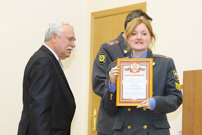 В свою очередь, председатель наблюдательного совета Общероссийской общественной организации «ОФИЦЕРЫ РОССИИ» Антон Цветков вручил ордена «За офицерскую честь» начальнику университета МВД, генерал-лейтенанту полиции Николаю Румянцеву и его заместителю, генерал-лейтенанту милиции Василию Игнатову.