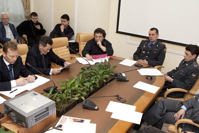 Модератором круглого стола выступил член Общественного совета при ГУ МВД России по г. Москве, председатель Комитета за гражданские права Андрей Бабушкин.