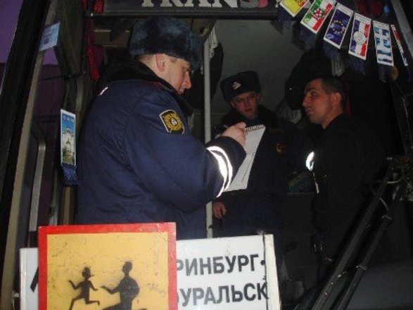 Госинспекторами технического надзора ГИБДД г. Екатеринбурга проверялось наличие опознавательных знаков. Также, проверялось техническое состояние транспортных средств, наличие в них медицинской аптечки, огнетушителя и всех необходимых документов для перевозки детей. Особое внимание уделялось отметке в путевом листе о прохождении водителем медицинского осмотра и к его квалификации, так как к перевозкам групп детей допускаются лица, имеющие непрерывный стаж работы водителем автобуса не менее трех лет.