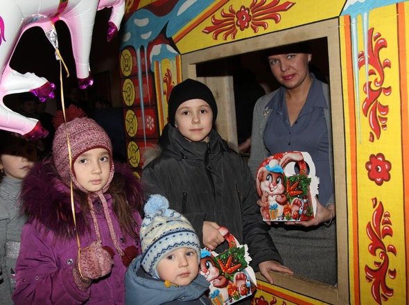 1000 маленьких гостей стали свидетелями увлекательного шоу. Дождавшись третьего звонка возвестившего о начале представления, они замерли в ожидании. С первых минут ребята погрузились в атмосферу сказки. Герои – Дед мороз, Снегурочка, обитатели сказочного леса, скоморох, красная шапочка сопровождали ребят по фантастическим дорогам новогодней сказки.