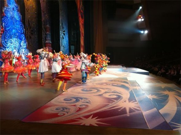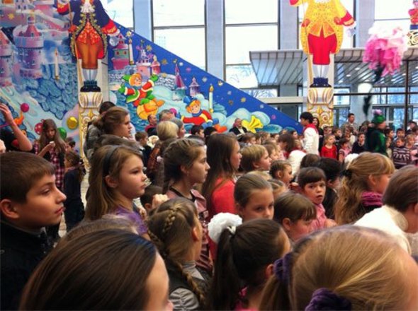 Так 8 января 2012 года в Государственный Кремлевский Дворец на новогоднее представление были приглашены более тысячи ребят. Добрый, волшебный, яркий праздник начался с забавных игр и большого хоровода, который в фойе Кремлёвского зала вместе с ребятами водили веселые сказочные персонажи.