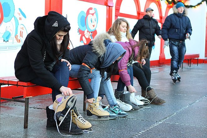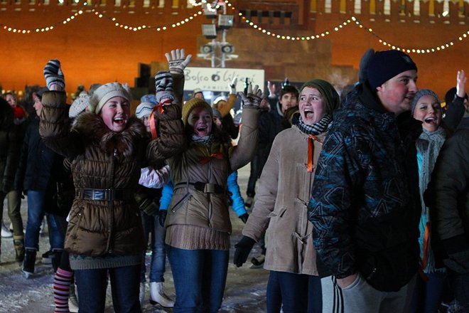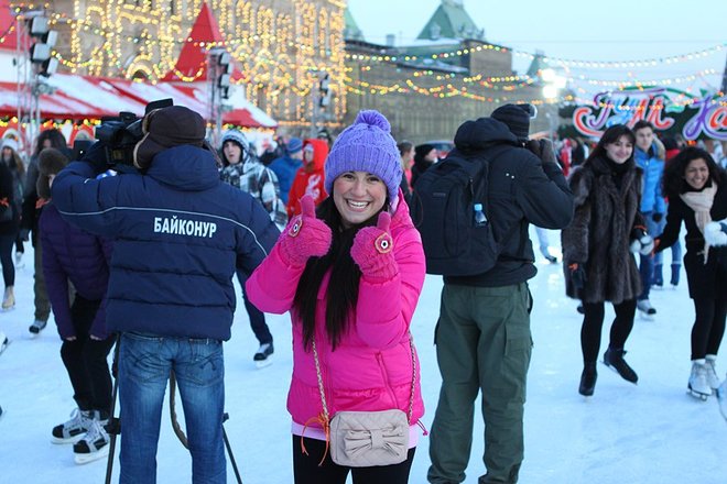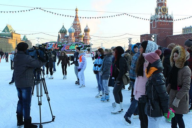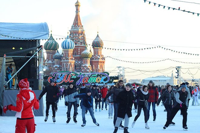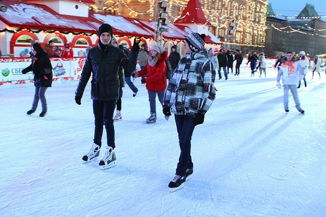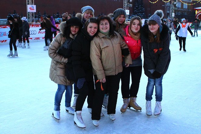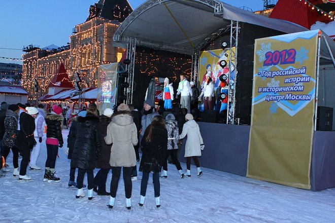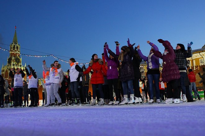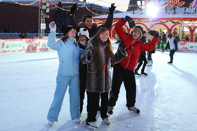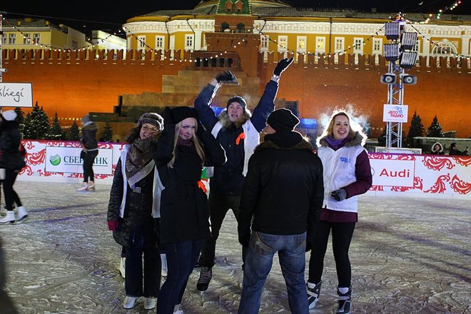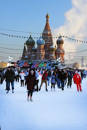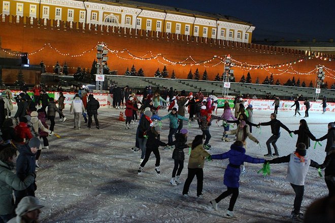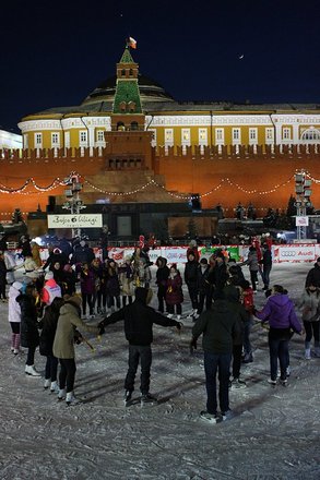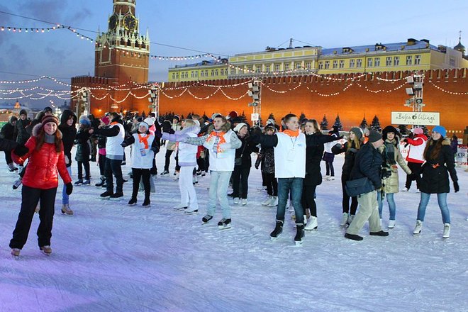 Вход на каток на Красной площади Московского Кремля осуществлялся по пригласительным билетам, которые получили студенты, проявившие себя в учебе и общественной жизни.