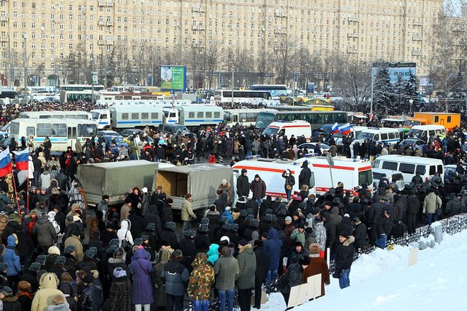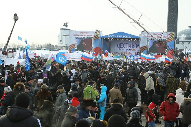 4 февраля на Поклонной горе прошел митинг, посвященный поддержке действующей власти. Московская мэрия разрешила проведение акции с числом 15 тысяч человек, однако, по данным правоохранительных органов, реально в митинге приняли участие более ста тысяч человек. Таких масштабных митингов не проходило на Поклонной горе еще ни разу.