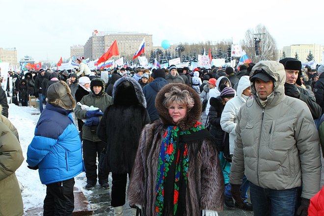 Основную часть участников митинга составляли люди среднего и пожилого возраста, молодежи было меньше, чем на митингах оппозиции на Болотной площади и проспекте Сахарова.