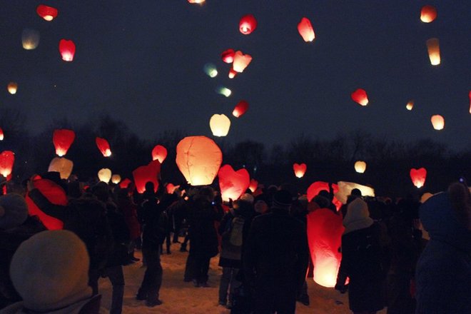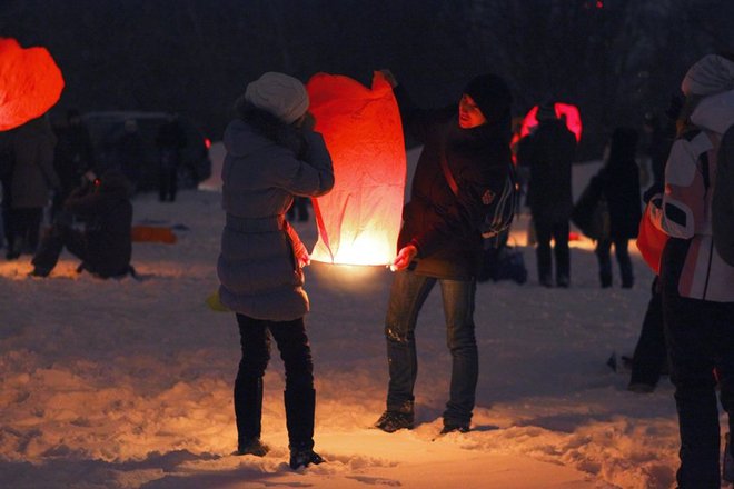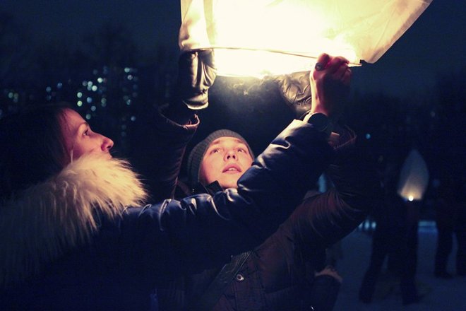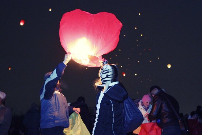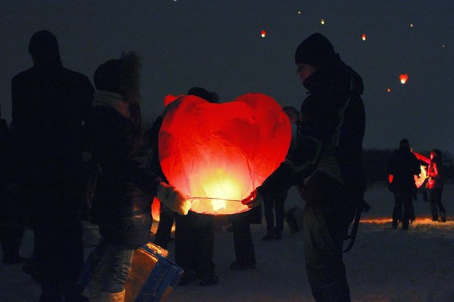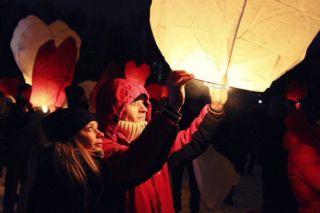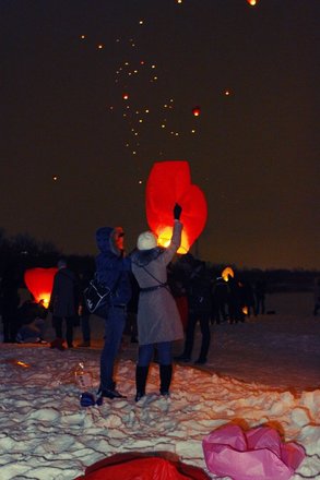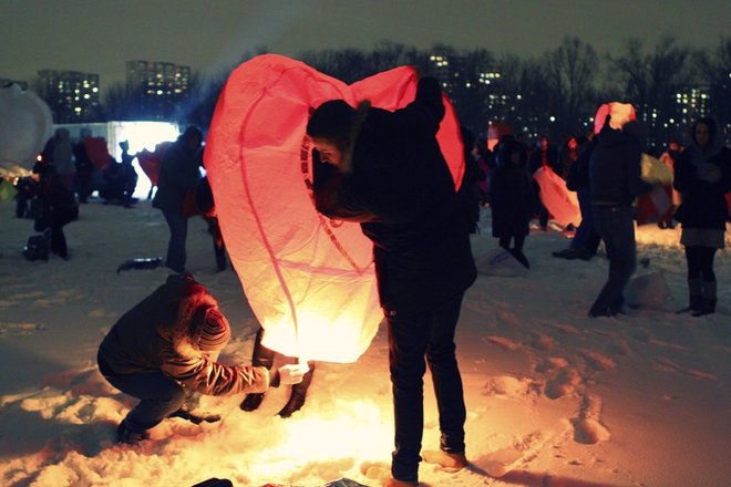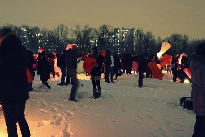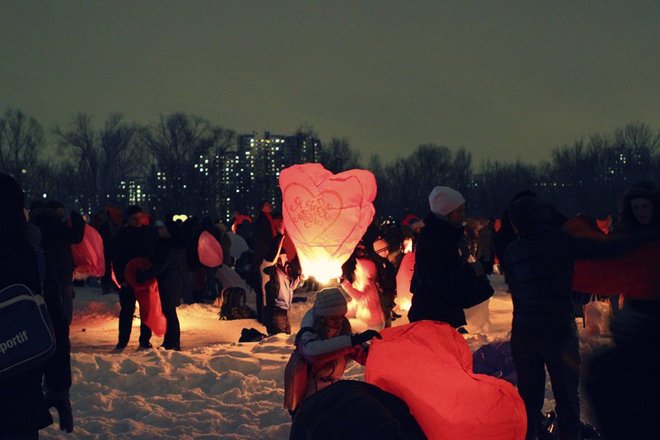 Около 800 влюбленных собрались 14 февраля в парке Нагатинская пойма, чтобы запустить в ночное небо воздушные фонарики. Таким образом они хотели заявить о своих чувствах. Помимо массового запуска фонариков в программе было выступление барабанщиков, фаер-шоу, дискотека на свежем воздухе.
