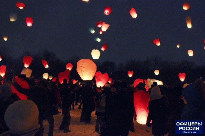 Около 800 влюбленных собрались 14 февраля в парке Нагатинская пойма, чтобы запустить в ночное небо воздушные фонарики. Таким образом они хотели заявить о своих чувствах. Помимо массового запуска фонариков в программе было выступление барабанщиков, фаер-шоу, дискотека на свежем воздухе.