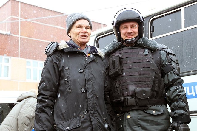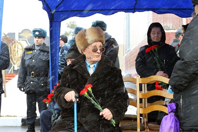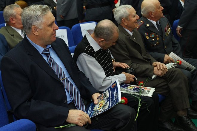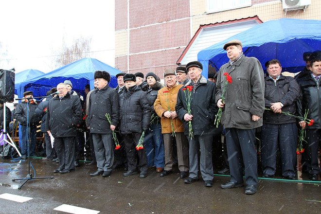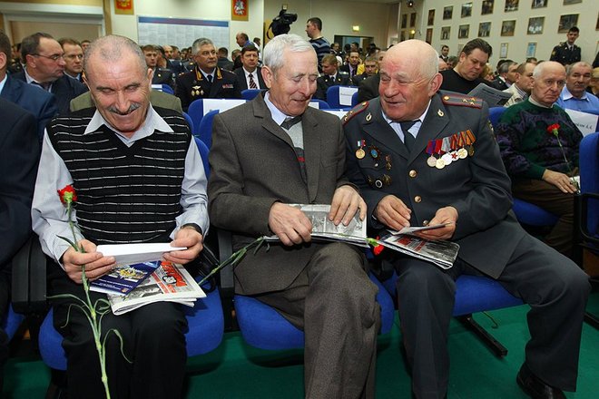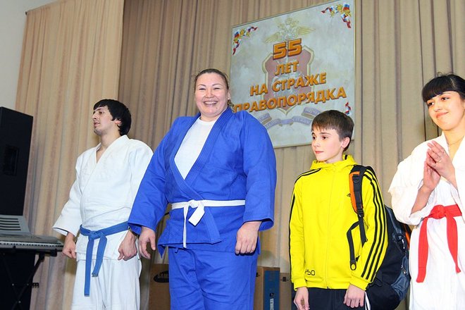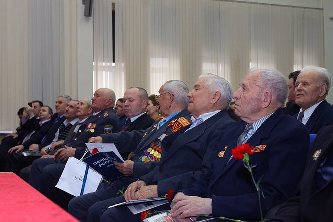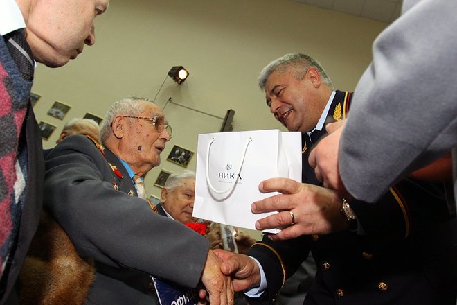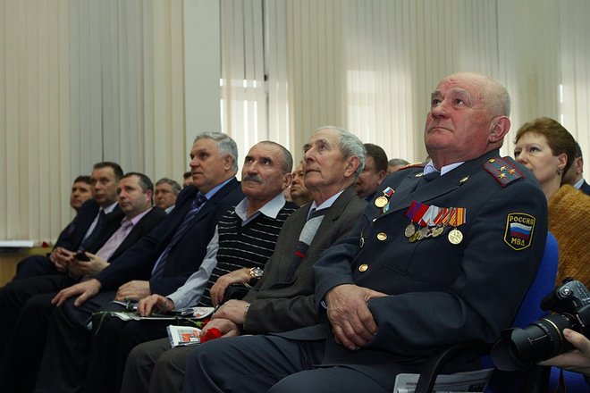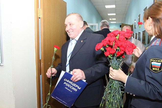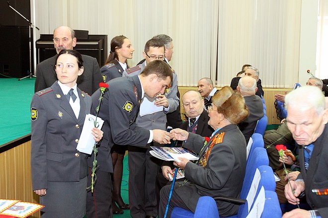 Затем полицейских поздравили ветераны, которые поблагодарили их за то, что они не забывают бывших товарищей. Вдова одного из сотрудников Евдокия Бойко подарила полку в честь юбилея позолоченный кубок.