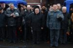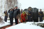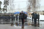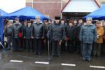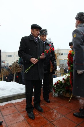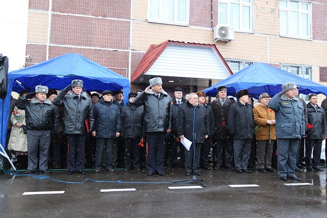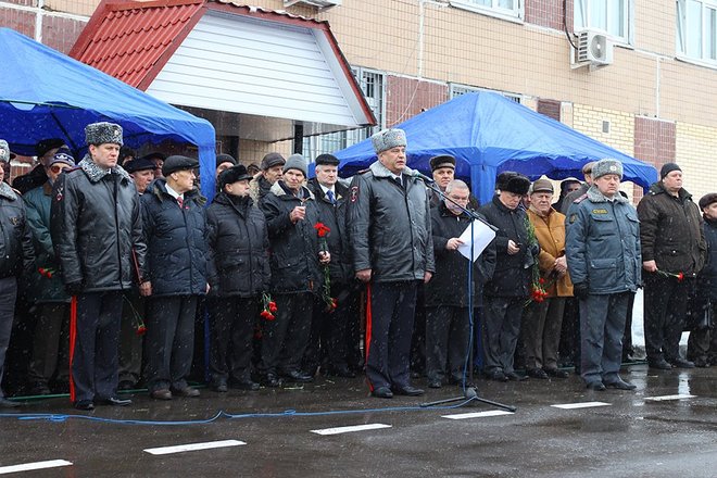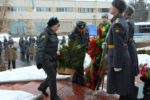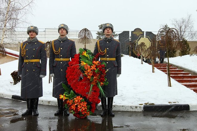 По традиции сотрудники полка возложили траурный венок к памятнику погибшим сотрудникам, их память почтили минутой молчания.