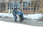 Кроме того, полицейские прошли торжественным маршем, а кинологи провели показательные выступления со служебной собакой.