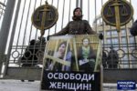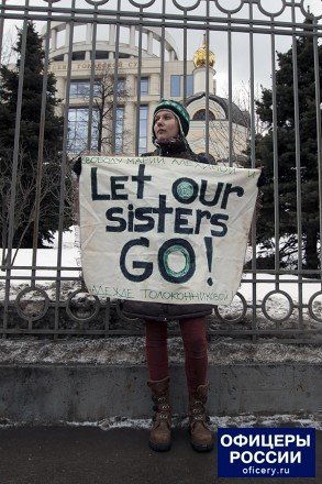 В этот день у здания суда были усилены меры безопасности. Дежурили дополнительные наряды полиции. Но, тем не менее, здесь собрались православные активисты и сторонники задержанных. Одни пикетчики держали плакаты с воззваниями наказать по закону Надежду Толоконникову и Марию Алехину, другие – с требованиями их освободить.