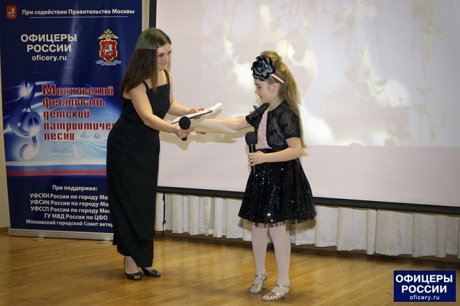 Московский фестиваль детской патриотической песни ежегодно проводят Общероссийская общественная организация «ОФИЦЕРЫ РОССИИ» и ГУ МВД России по Москве. Этот фестиваль давно уже стал культурным событием общероссийского уровня.