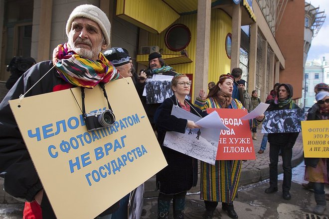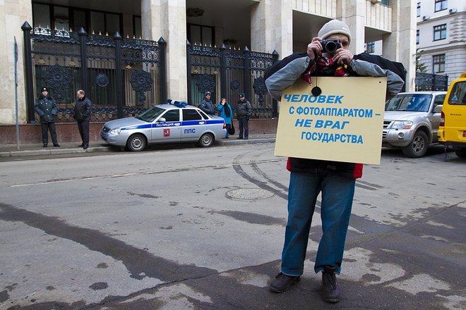 Санкционированный пикет московских фотографов в защиту прав фотожурналистов