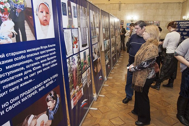 Общероссийская общественная организация «ОФИЦЕРЫ РОССИИ» совместно с Общественным советом при МВД России подготовила авторскую фотовыставку В.И. Попова «Сыны России – наша боль и память», посвященную сотрудникам органов внутренних дел, погибших при исполнении служебных обязанностей. Ее открытие проходило в министрстве внутренних дел с участием главы ведомства Рашида Нургалиева. Экспозиция выставлялась в Госдуме, Совете Федерации, Главном управлении МВД России по ЦФО, Главном управлении МВД России по Москве, Могордуме. Ее увидели тысячи человек на Дальнем Востоке, в Рязани, Москве, Московской области и других регионах страны.