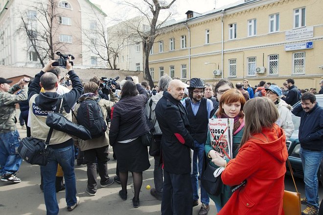 19 апреля в Таганском суде Москвы проходило слушание по делу участниц группы Pussy Riot Марии Алехиной, Надежды Толоконниковой и Екатерины Самуцевич, которые 21 февраля устроили "панк-молебен" в стенах храма Христа Спасителя.