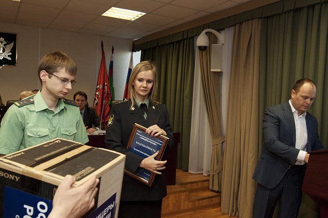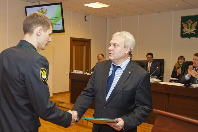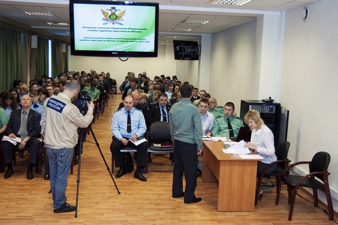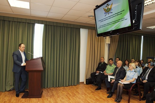 Коллегия УФССП по г. Москве 27 апреля 2012 началась с награждения лучших участников первого этапа Всероссийского конкурса судебных приставов-исполнителей. Награждения провели и. о. руководителя Управления Федеральной службы судебных приставов по Москве Александр Стебаков и председатель Общественного совета при УФССП Антон Цветков.