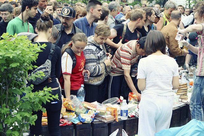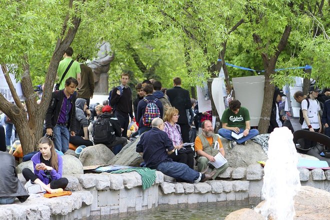 На Чистых прудах уже пятый день проходит бессрочная акция оппозиции. Участники «народных гуляний» собираются у памятника Абаю Кунанбаеву. Люди сидят на бордюрах, скамейках, разговаривают друг с другом, пьют горячий чай или сок, кушают, общаются, играют в бадминтон, в настольные игры, играют на гитаре… Ежедневно сюда приходят, по разным данным, от 60 до 700 человек.