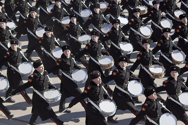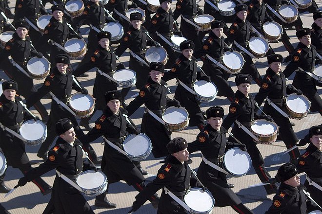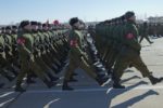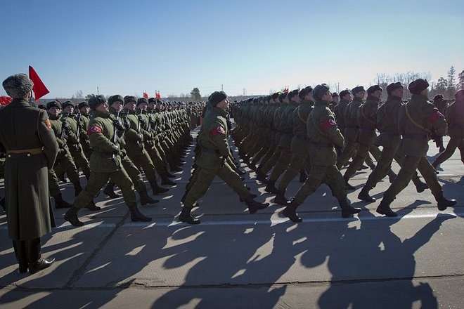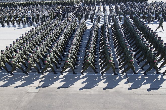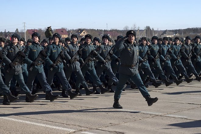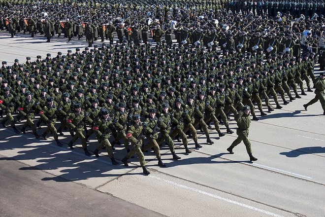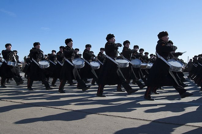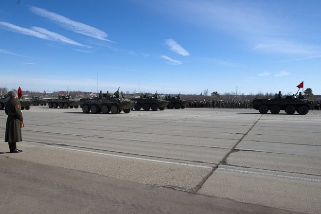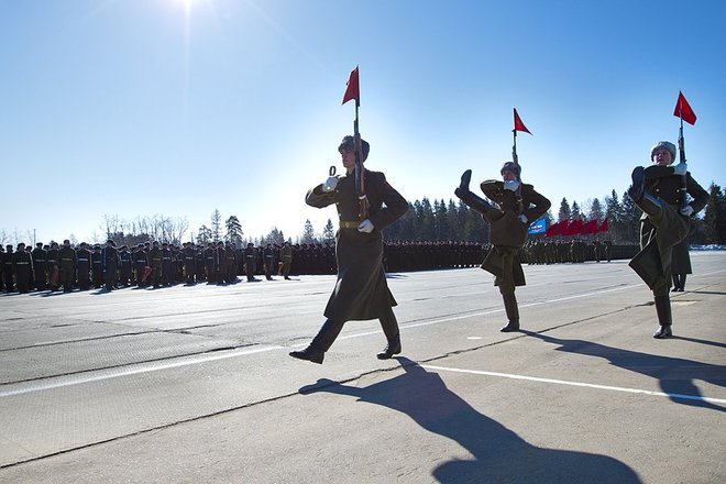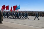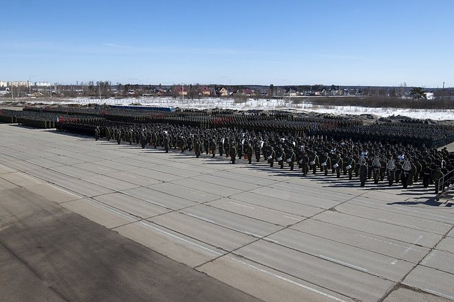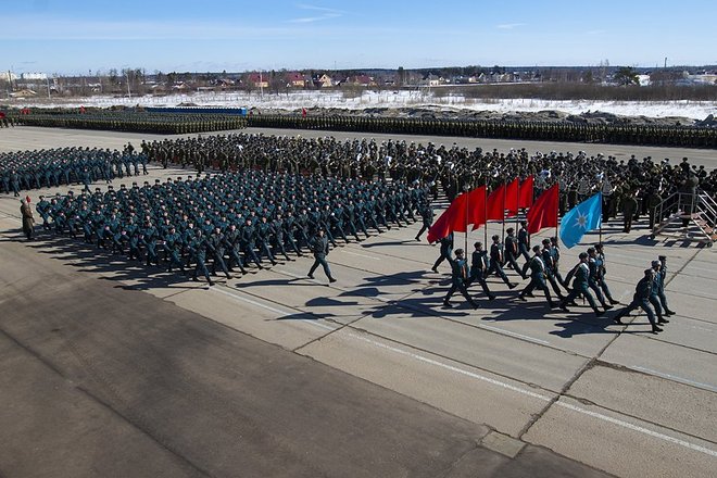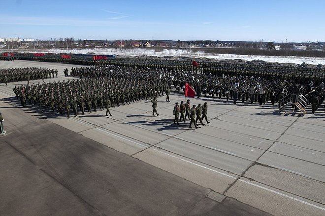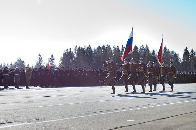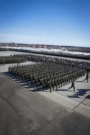 4 апреля на парадной площадке полигона в Алабино прошла репетиция парада Победы. В тренировке участвовали пешие колонны и военные машины.