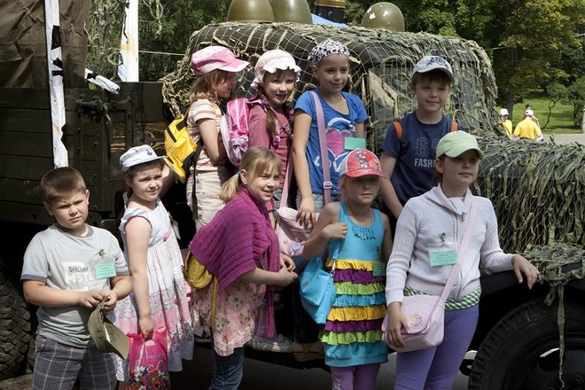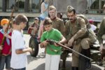 Перед входом в концертный зал была организована выставка техники и вооружения военных лет, которую с интересом рассматривали школьники. Тут же расположилась полевая кухня, из котла которой каждый желающий мог попробовать настоящую армейскую гречневую кашу с тушенкой. Ветераны также оставили свои записи и воспоминания, которые войдут в «Книгу мира».