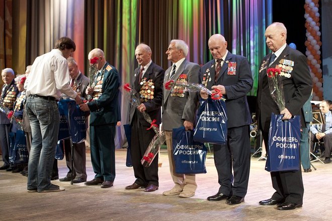 Перед зрителями выступили ветераны, представители государственной власти, общественности. Они говорили о войне и о том, какой ценой была завоевана Победа. Обращаясь к зрителям, член президиума Общероссийской общественной организация «ОФИЦЕРЫ РОССИИ» Юрий Пантелеев, в частности, отметил: «ОФИЦЕРЫ РОССИИ» уделяют большое внимание военно-патриотическому воспитанию молодого поколения. В этом зале собралось много детей и молодежи. Я хочу обратиться к вам: от нас всех зависит судьба нашего Отечества, и мы вместе должны делать все необходимое, чтобы сохранить хрупкий мир, чтобы мы всегда гордились тем, что живем в великой стране, имя которой – Россия».