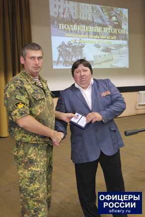 Член президиума Общероссийской общественной организации «ОФИЦЕРЫ РОССИИ», бывший командир отряда специального назначения «Витязь» Николай Соловьев вручил ордена и медали организации «За офицерскую честь» лучшим бойцам отряда и пожелал им продолжать славные традиции спецназа.