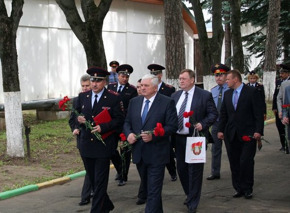 По уже сложившейся традиции минутой молчания гости почтили память сотрудников органов внутренних дел погибших при исполнении служебного и гражданского долга. К мемориалу памяти были возложены живые цветы. В заключении делегация посетила музей истории подмосковной милиции и познакомились с уникальными экспонатами выставки.