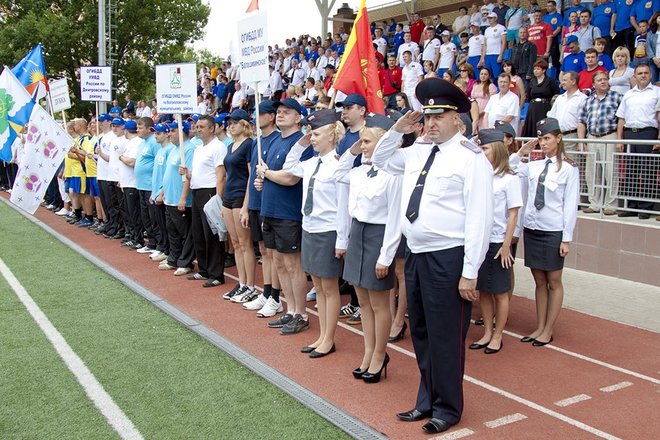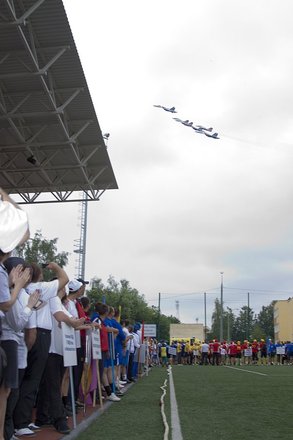 Всего в старте VI летней спартакиады приняли участие около тысячи сотрудников ведомства. Праздничное настроение поддерживали артисты, футбольная команда Первого канала, пилотажная группа "Русские Витязи" и другие сюрпризы.