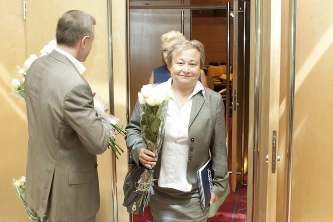 Когда на выходе из зала каждая из женщин получила по букету белых роз, их деловой настрой сразу сменнился на искренние и светлые улыбки. Всё-таки женщины, какие бы посты они не занимали и кем бы ни работали, всегда остаются женщинами…